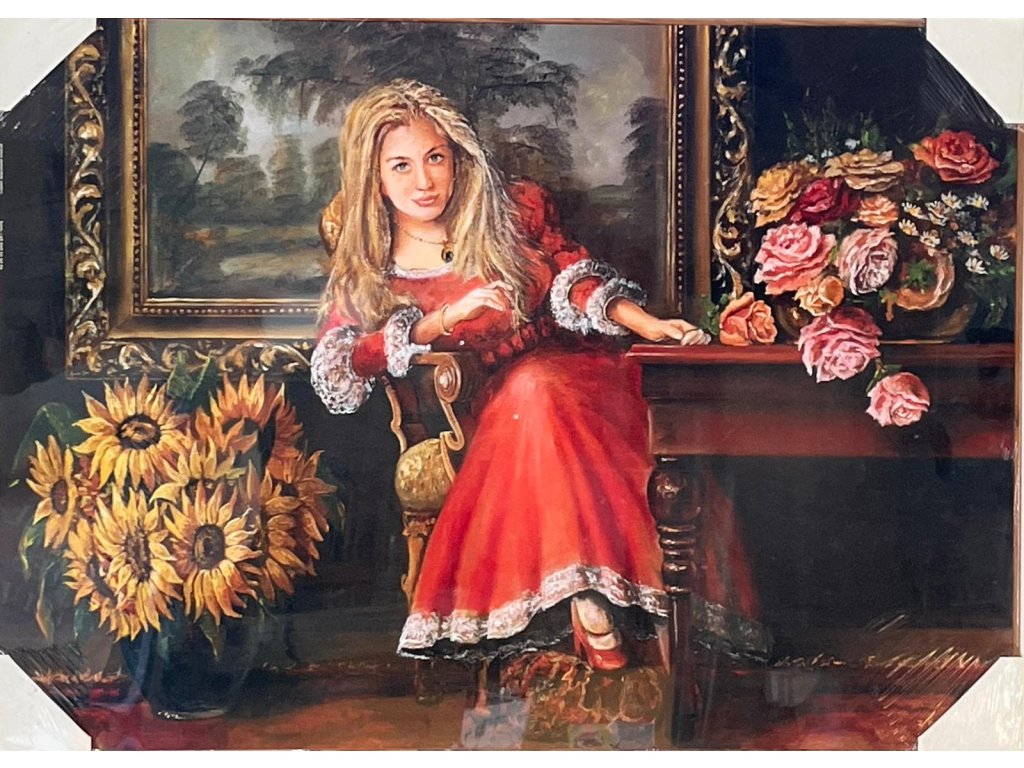 Obraz "Dívka v červených šatech" - tisk na papír, 70x50cm