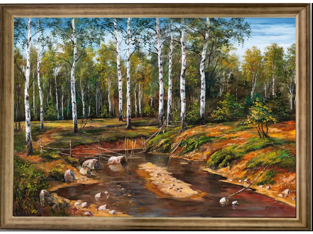 Obraz lesa - reprodukce, je skvělá dekorace do vašeho pokoje nebo i na chatu. Krásně se hodí i jako dárek k narozeninám, nebo na vánoce. Obraz je tištěný na papír se strukturou plátna, má dřevěný frézovaný rám. Rozměr obrazu 100x60cm.