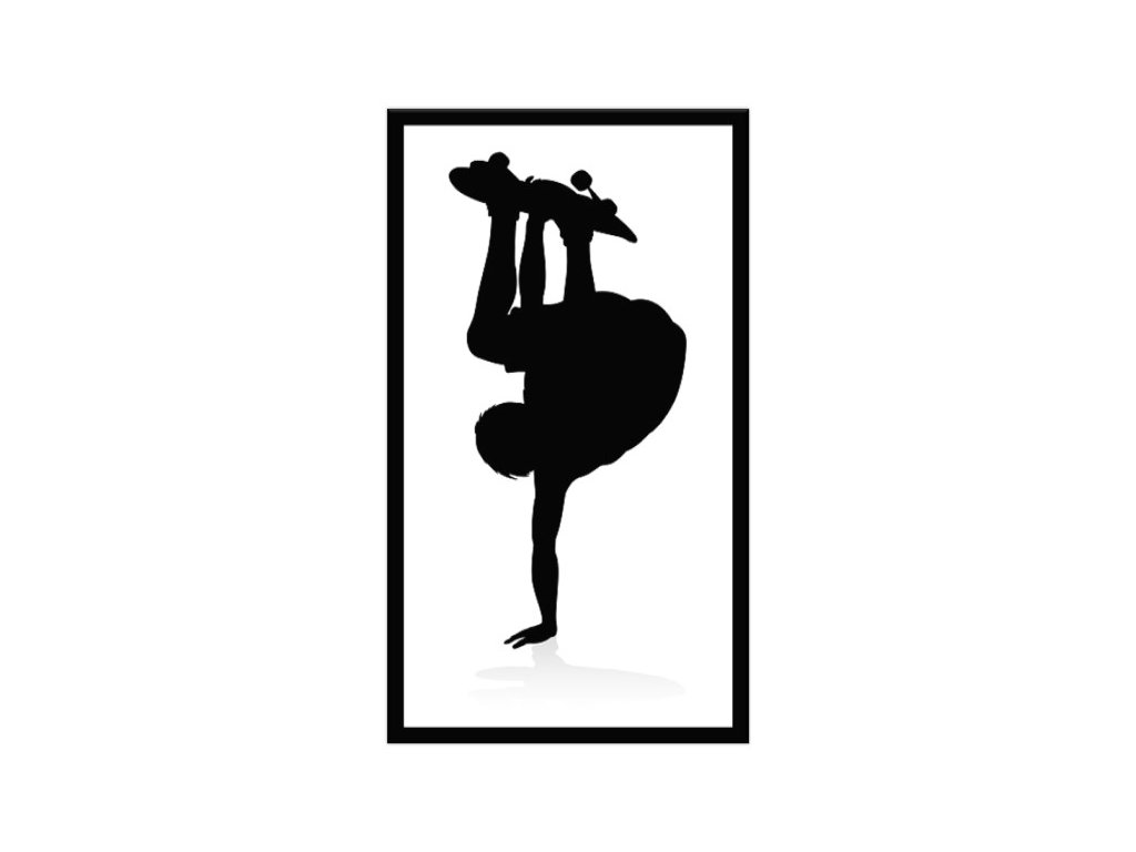 Moderní černobílý obraz, který zobrazuje siluetu skatemana. Hodí se třeba do dětského pokoje, tělocvičny nebo tanečního studia.