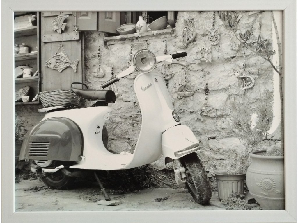 Obraz v rámu černobílý "Scooter" - 43x33cm