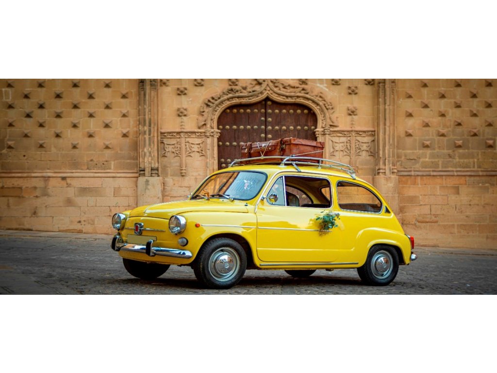 Tento obraz zobrazuje zářivě žlutý retro automobil s vintage kufrem na střeše a květinovou dekorací. Evokuje letní cestování, retro styl a lehkost života. Skvěle se hodí jako dekorace do vašeho bytu, nebo domu například do obýváku nebo předsíně, ale i do kancelářských prostor nebo hotelů či cestovních kanceláří. Obraz je skvělý dárek pro milovníky veteránů, retro designu nebo cestování.