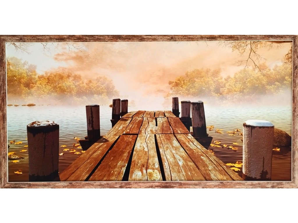 Obraz zachycuje dřevěné molo v oparu podzimní krajiny. Skvěle se hodí jako dekorace do vašeho bytu, nebo domu například do obýváku, či ložnice, také například do kavárny nebo do jiných relaxačních prostor. Je vhodným dárkem k narozeninám, nebo ke kolaudaci.