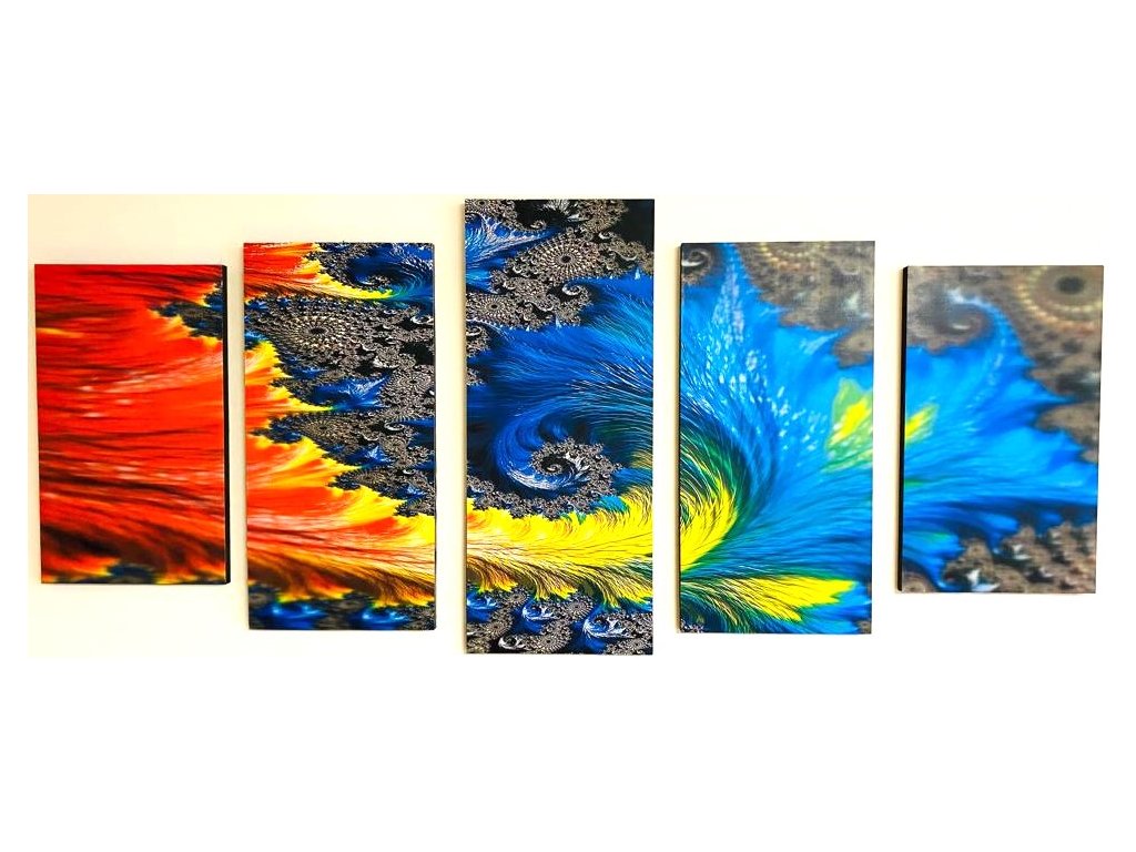 Pěti dílná sada obrazů červeno modré barvy je vhodná dekorace do každé domácnosti, skvěle vám vyzdobí obývací pokoj, nebo i jiný pokoj. Obraz je taky vhodný jako dárek k narozeninám a spoustě dalších příležitostí.