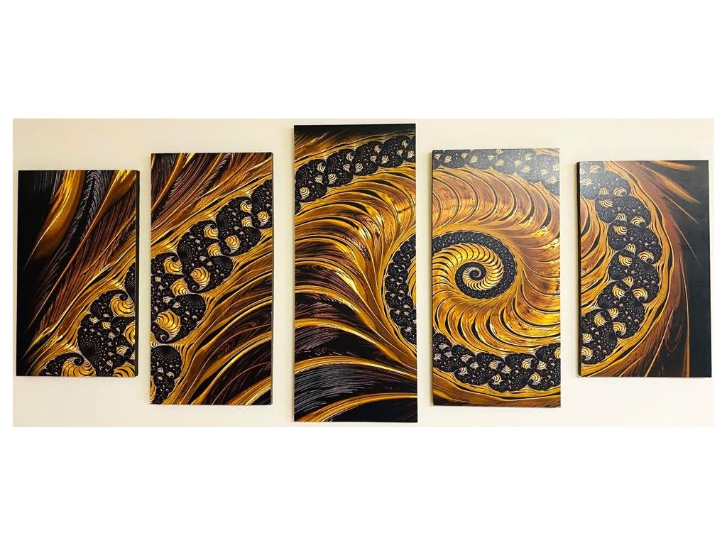 5 dílná sada obrazů zlato černé barvy, 150 x 70 cm, hloubka 2 cm